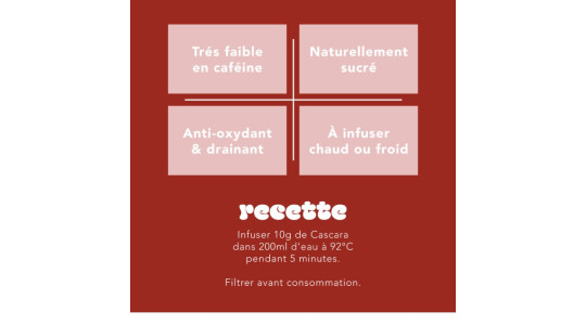 Issue des cerises de café, la Cascara se savoure en infusion douce & fruitée. Récoltée puis lentement séchée sur patios à la ferme Santa Isabel, au Guatemala, par le producteur Alex Keller.
